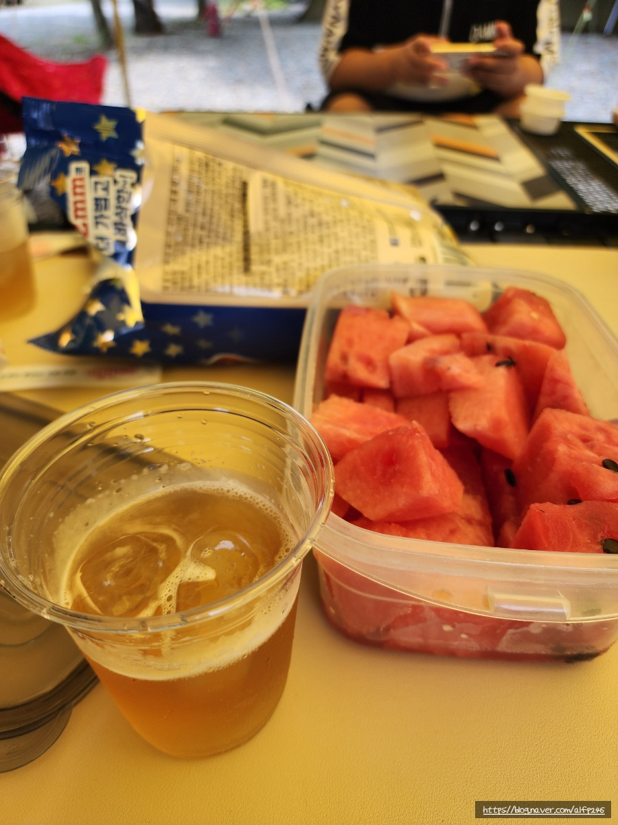 나와서 맥주한잔에 수박도 먹고!!!!!!!!